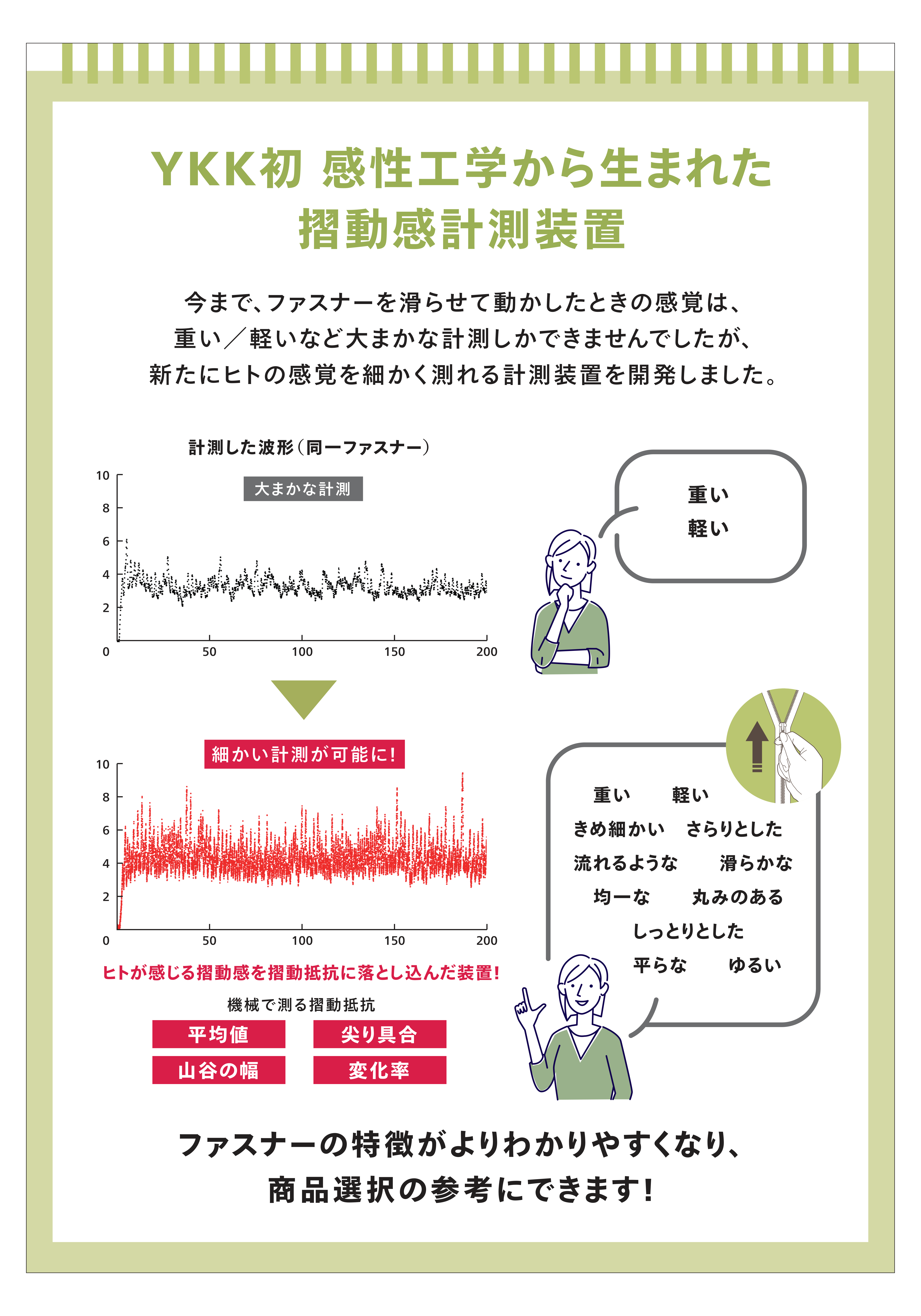 - 摺動感とはヒトがファスナーの開閉操作をした時に、指先から感じる操作感を示しています。詳細はコチラ